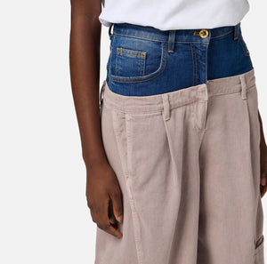 .Cargo-Hose aus Baumwolle mit Schößchen aus Denim